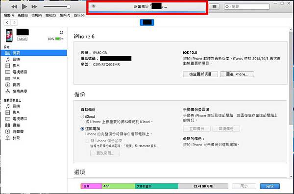 此時上方就會出現進度條,等進度條跑完備份就完成了。