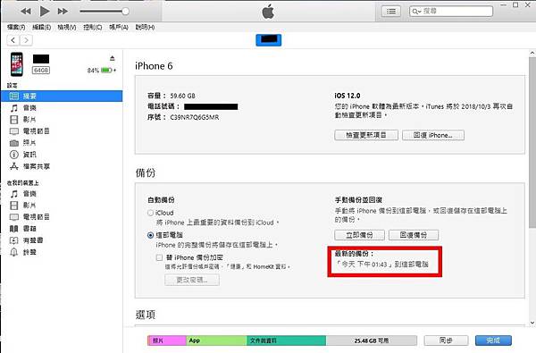 確認下方"最新的備份"是否有顯示此次備份